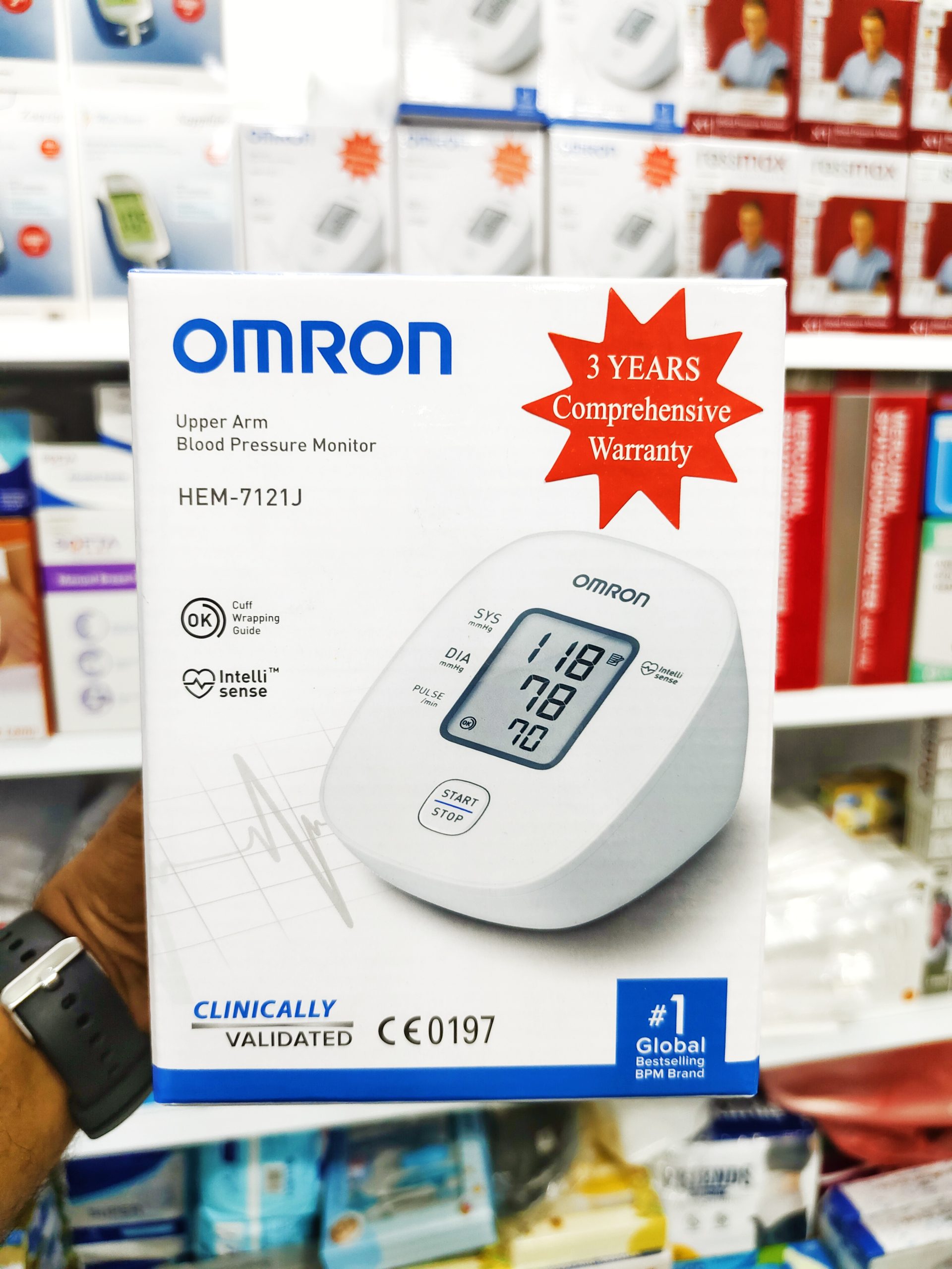 Omron HEM 7121J comes with 3 years warranty. This digital blood pressure monitor is guaranteed to meet your standards